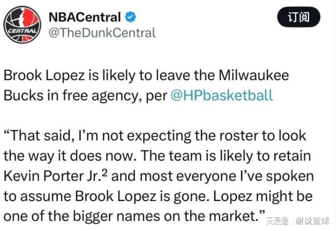 前湖人中锋布鲁克-洛佩斯,从目前情况来看,似乎又要换队了。根据记者马特-摩尔的相关报道,雄鹿今年夏天很可能跟布鲁克-洛佩斯分道扬镳,除了后者状态下滑明显,又不太可能低薪续约外,也是因为雄鹿如果失去当家球星“字母哥”扬尼斯-阿德托昆博,就会直接选择拆队重建,留下布鲁克-洛佩斯,就没有任何意义了。